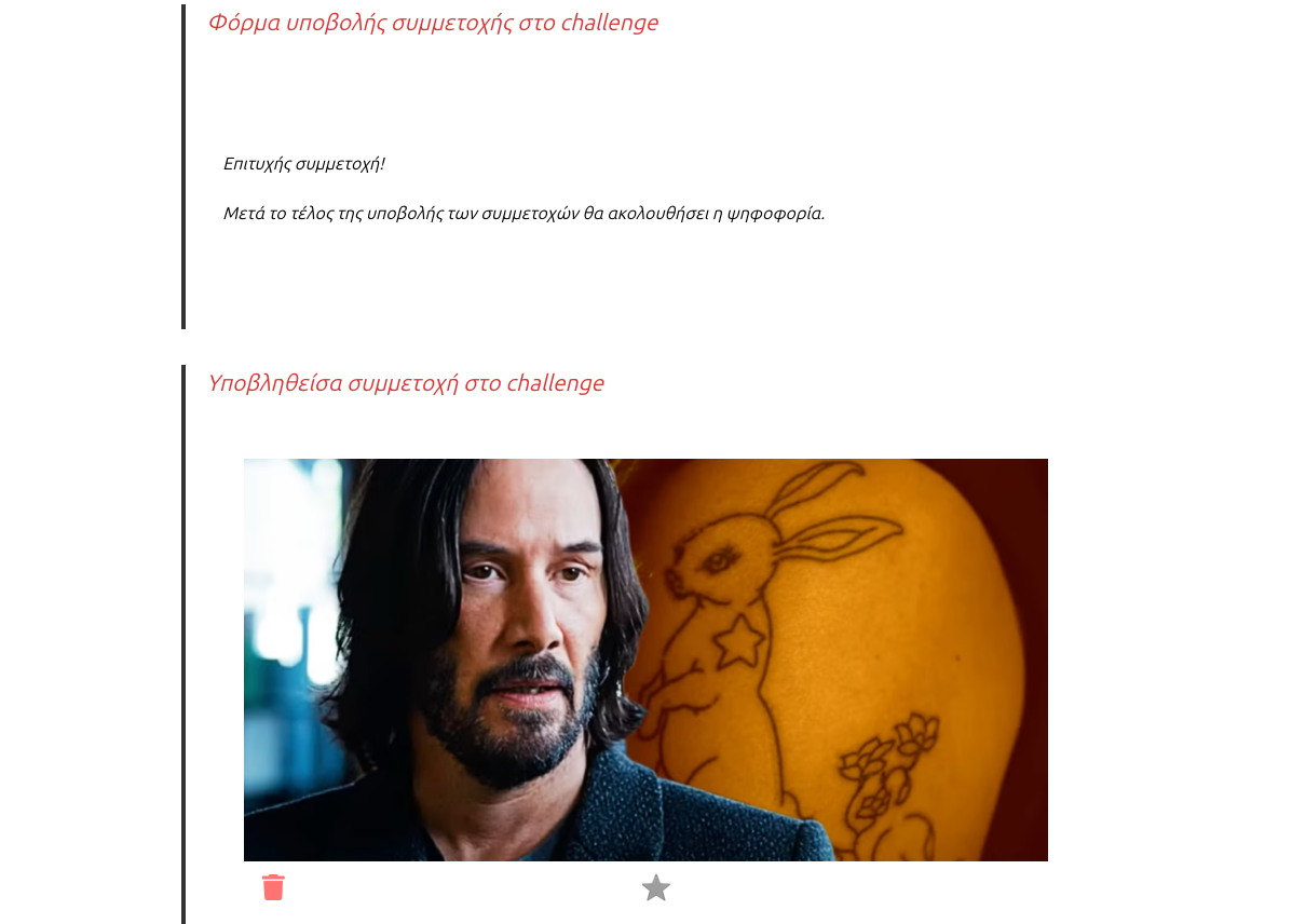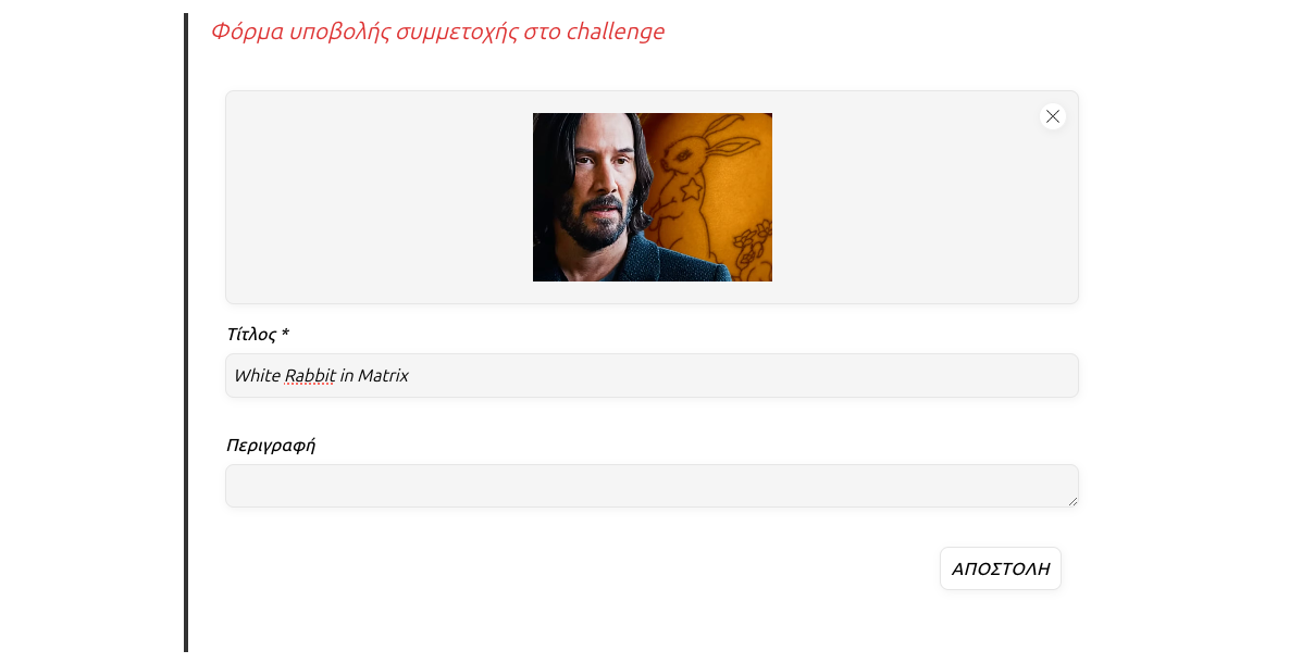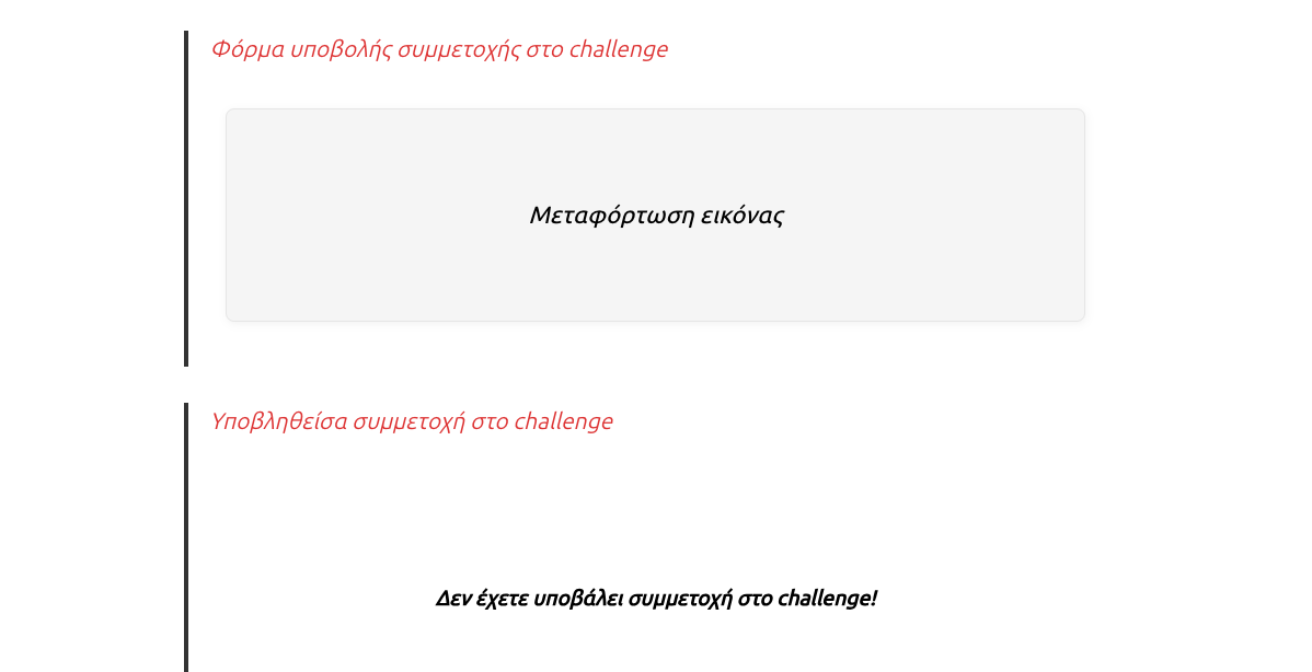 Πριν την αρχική υποβολή μιας συμμετοχής ο χρήστης πατώντας στην μεταφόρτωση εικόνας μεταφέρεται στη φόρμα υποβολής.