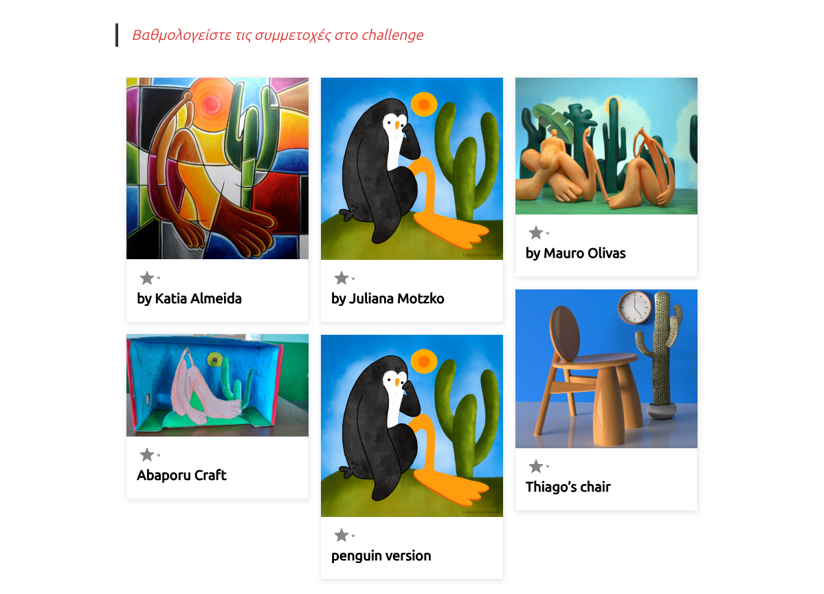 Ο χρήστης επιλέγει μία από τις συμμετοχές προς βαθμολόγηση. Στο παράδειγμα καμία δεν έχει βαθμολογηθεί από τον χρήστη.