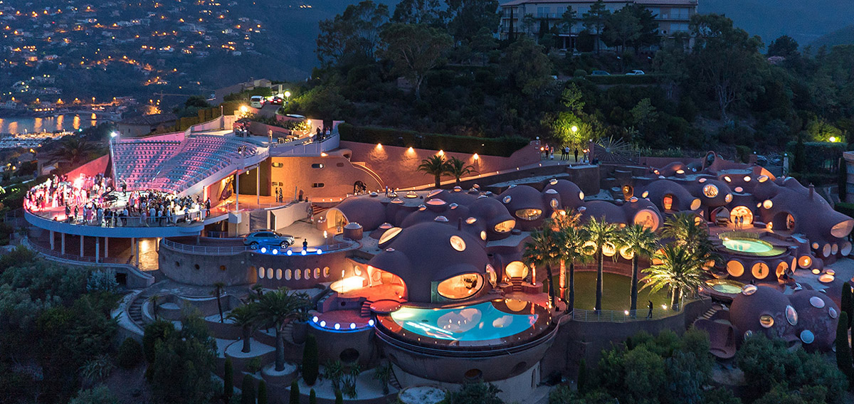 Αρχικά σχεδιασμένο από δύο σημαντικούς αρχιτέκτονες Antti Lovag και Pierre Bernard τη δεκαετία του 1970, το οργανικό Bubble Palace, που αποτελείται από μια σειρά από χώρους με φούσκες, αγοράστηκε από τον αείμνηστο σχεδιαστή μόδας Pierre Cardin το 1992.